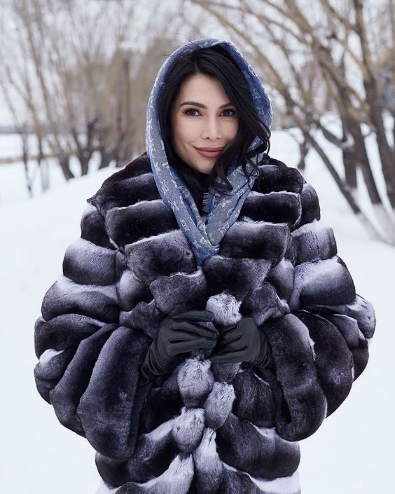 Musi Red Sheared Beaver 3/4 Coat with Chinchilla Collar- Size M