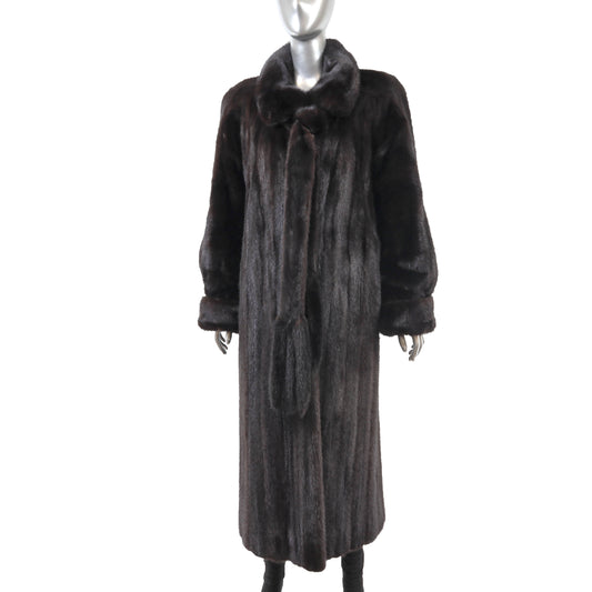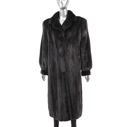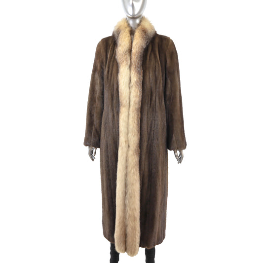 Brown Mink Coat with Fox Tuxedo- Size S-M