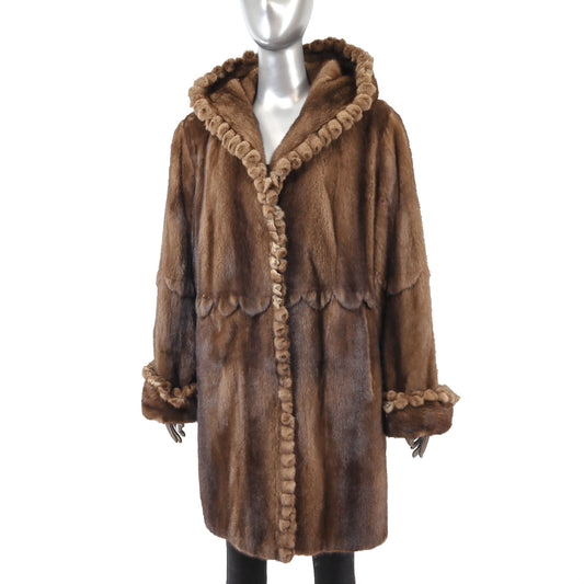 Brown Hooded Mink 3/4 Coat- Size L