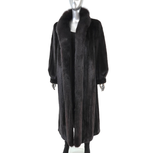Black Mink Coat with Fox Tuxedo- Size XL-XXL