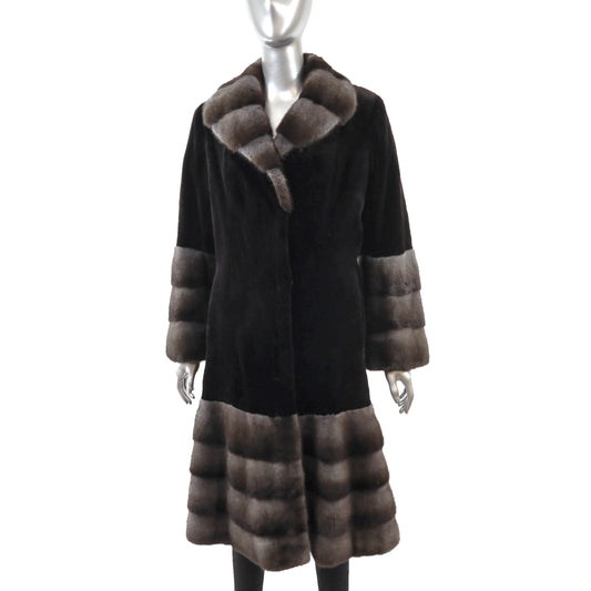 Sheared Mink 7/8 Coat with Mink Trim- Size S