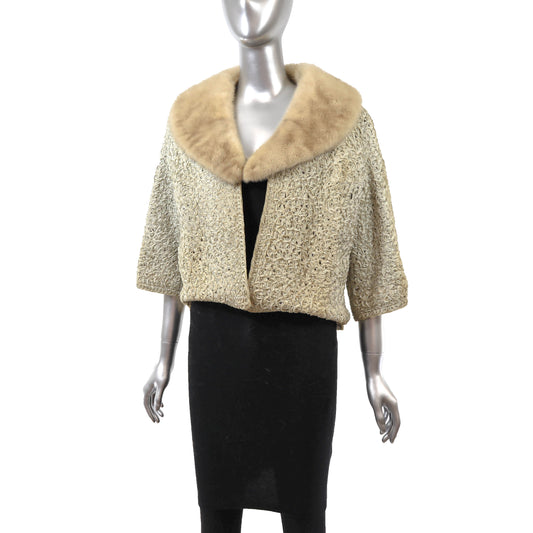 Beige Ribbon Jacket with Mink Collar- Size S