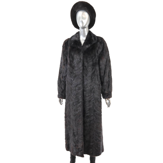 Dark Brown Section Mink Coat with Matching Hat- Size M