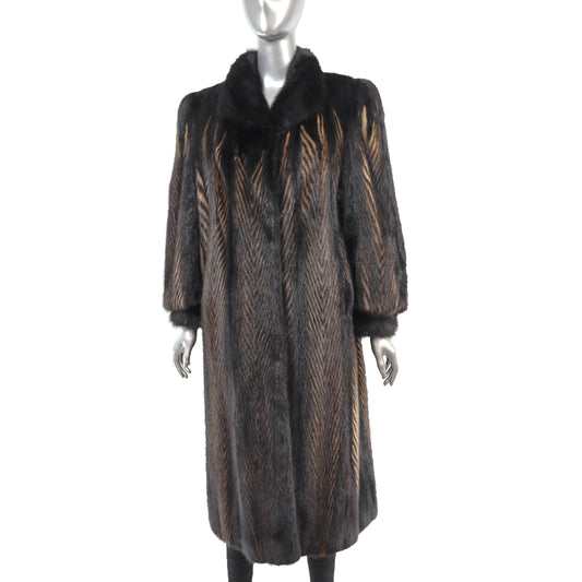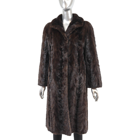 Saks Jandel Dark Brown Section Mink Coat- Size S