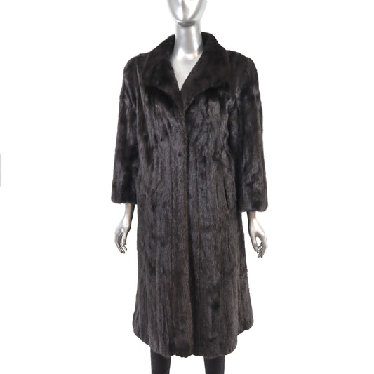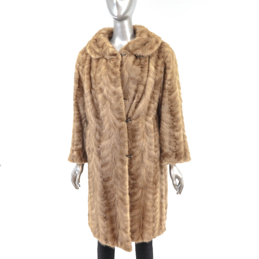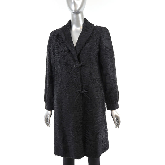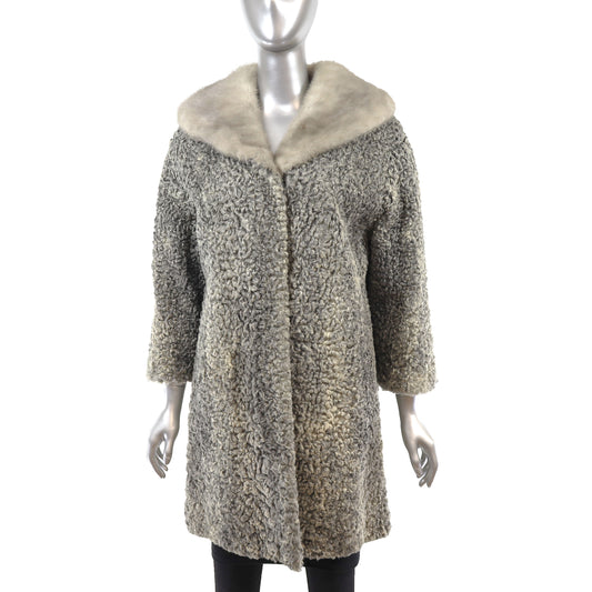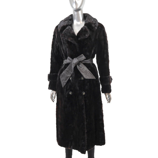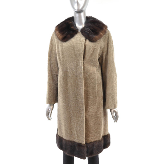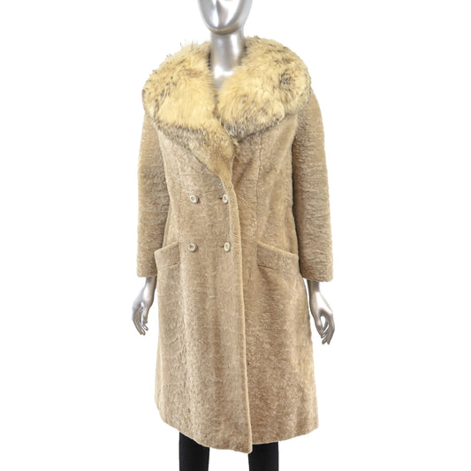 Red Sheared Rabbit Coat with Fox Trim- Size S
