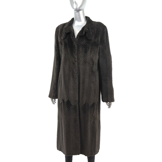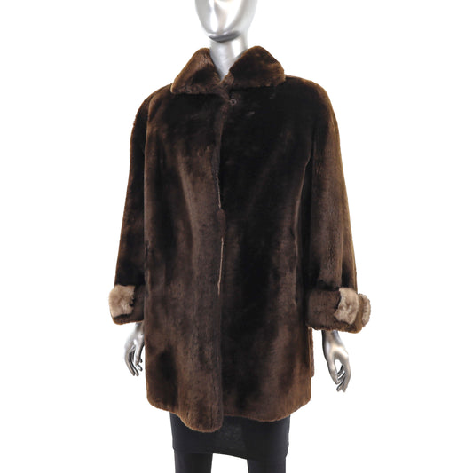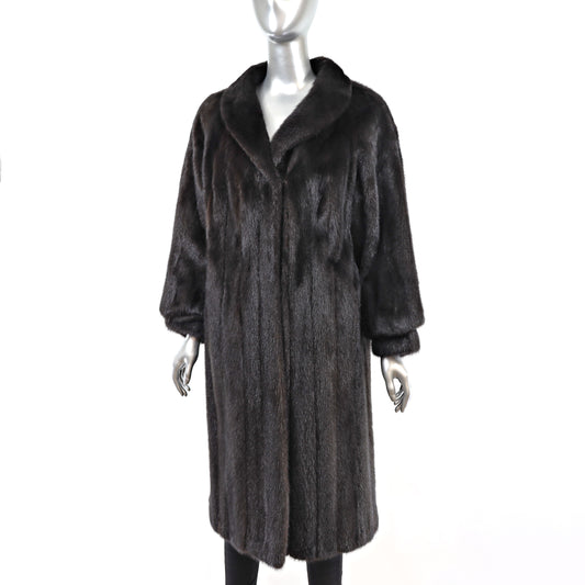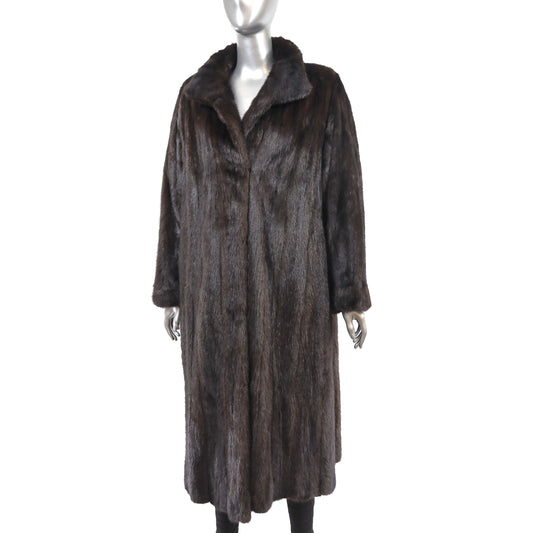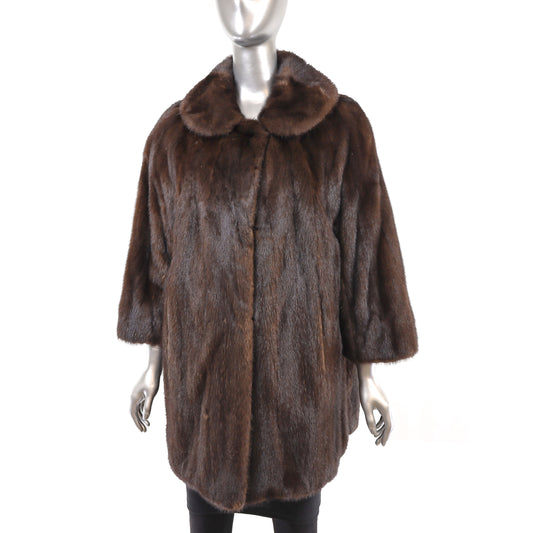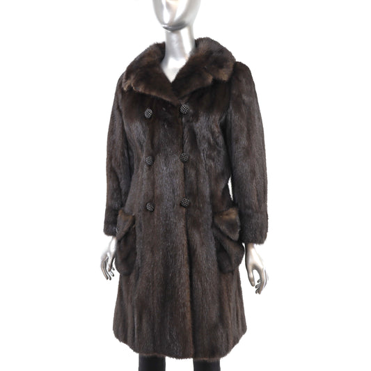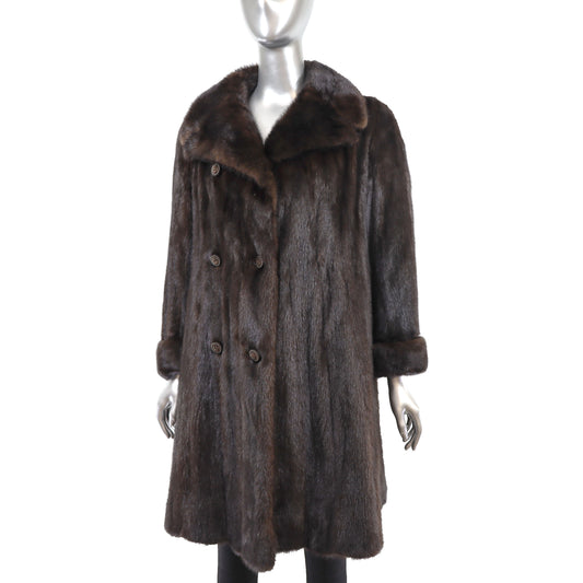 Dark Brown Mink Coat Reversible to Taffeta- Size L