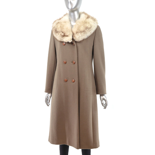 Knitted Brown Rabbit Vest with Fox Trim- Size S