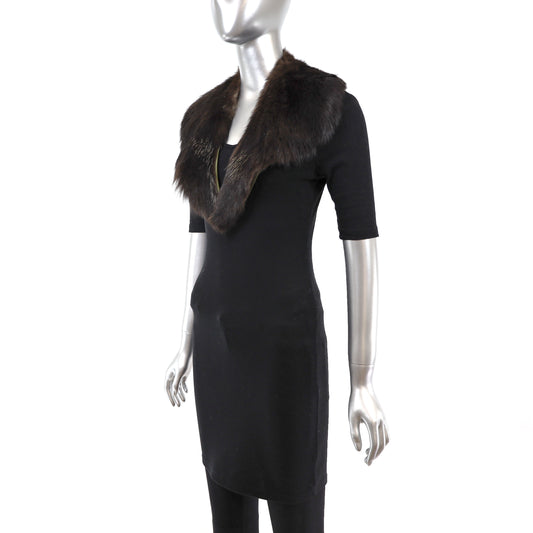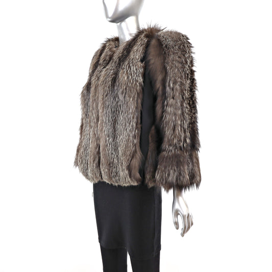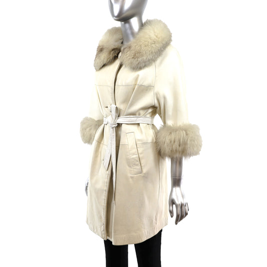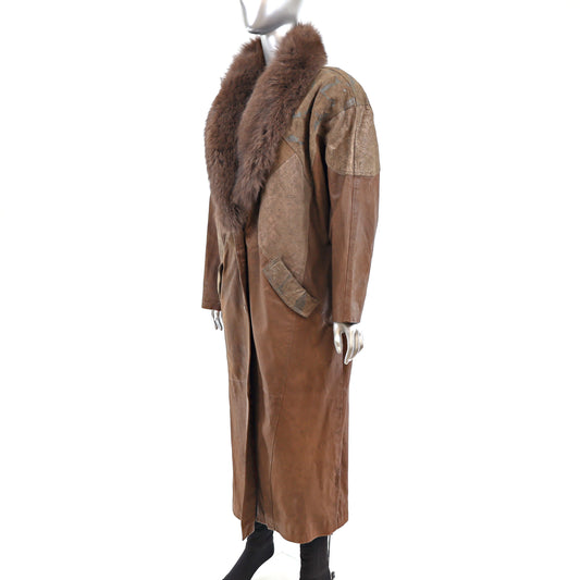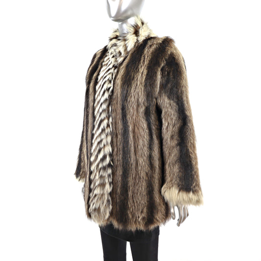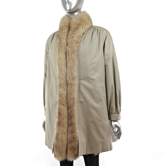 Taffeta Coat with Fox Tuxedo and Removable Lamb Lining- Size M