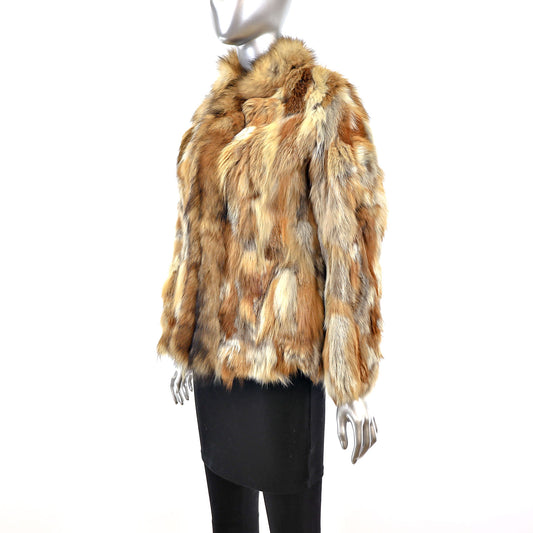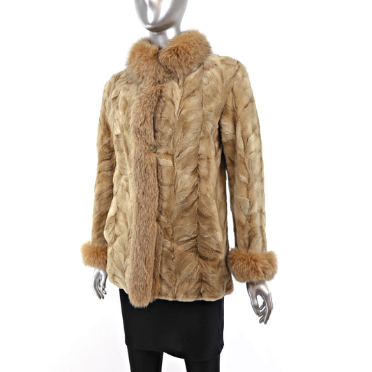 Pastel Section Sheared Mink Jacket with Fox Trim- Size S