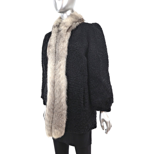 Persian Lamb Jacket with Fox Tuxedo- Size M