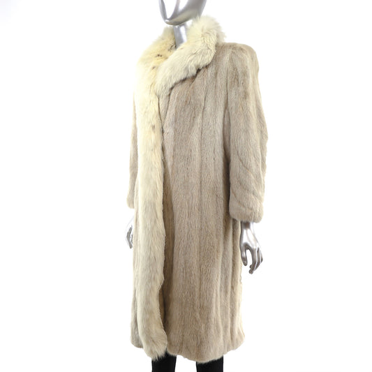 Tourmaline Mink Coat with Fox Tuxedo- Size S