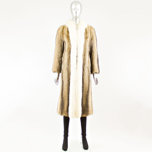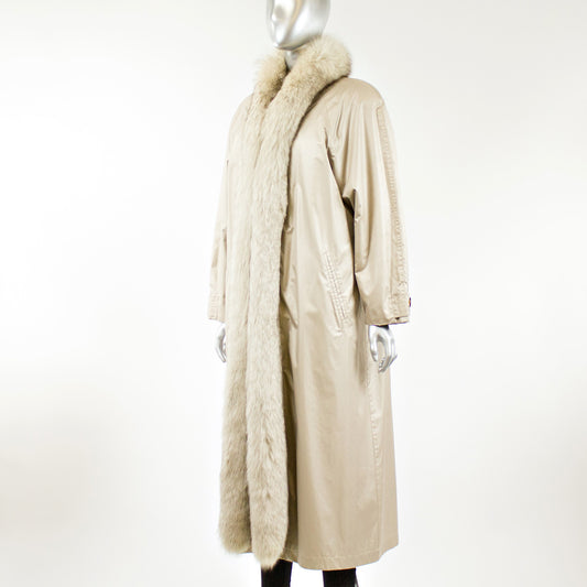 Microfiber Rain Coat with Nutria Fur Liner Fox Fur Trim - Size S