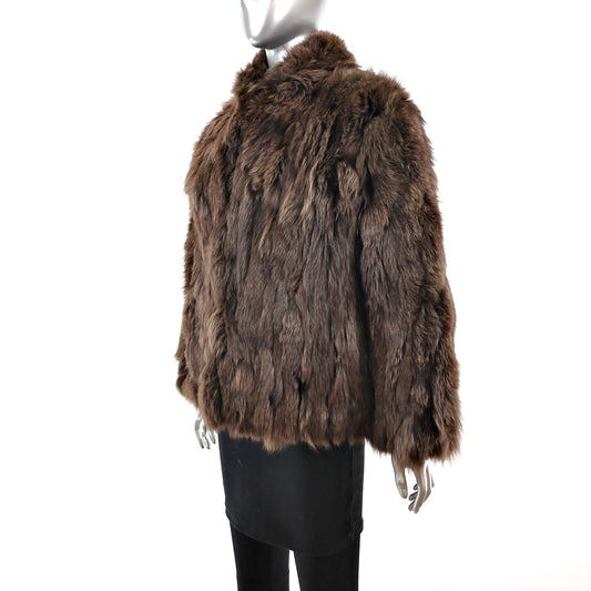 Brown Taffeta Coat with Rabbit Lining and Fox Collar and Cuffs - Size S