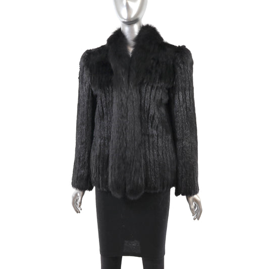 Black Corded Mink Jacket with Fox Tuxedo- Size S