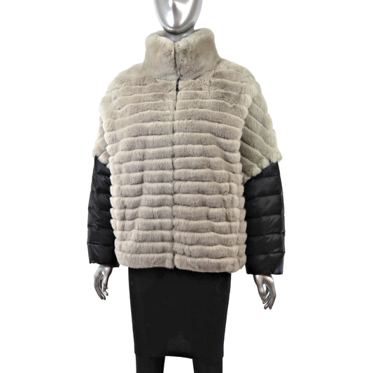Pastel Rex Rabbit Puffer Jacket with Detachable Sleeves- Size S