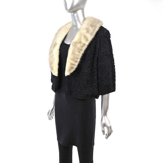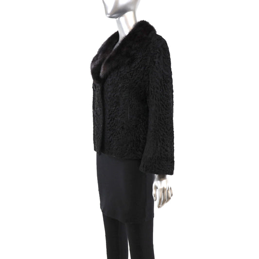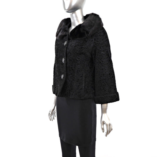 Persian Lamb Jacket with Mink Collar and Matching Hat- Size M