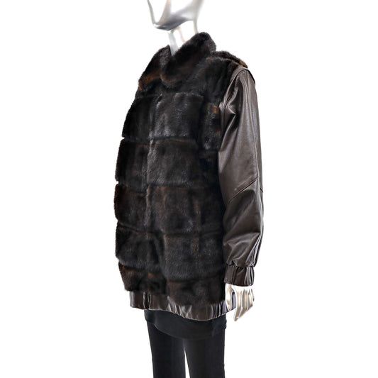 Dark Brown Mink Jacket Reversible to Leather- Size M