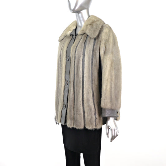 Grey Mink Jacket with Leather Insert- Size M