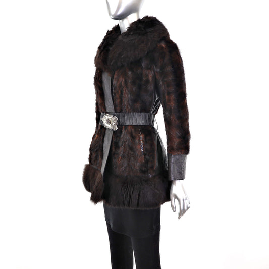 Nutria Jacket with Mink Tuxedo- Size S