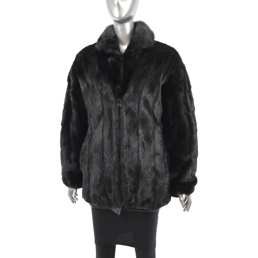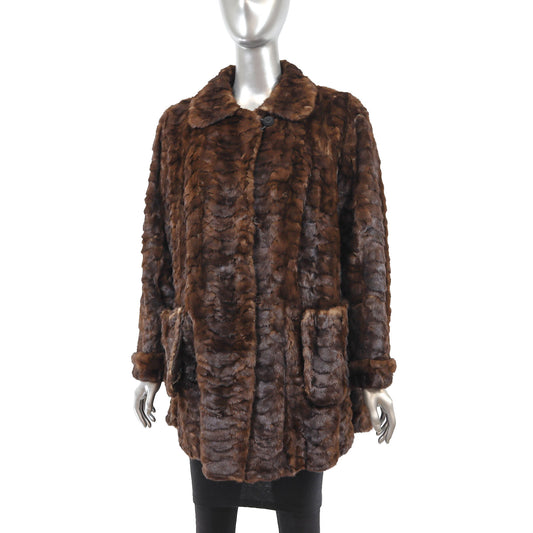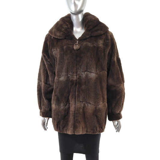 Dark Brown Eyelash Mink Reversible Jacket- Size M
