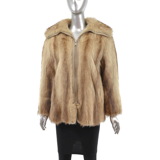 Light Brown Mink Jacket with Free Raccoon Collar- Size M