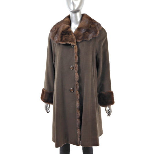 Brown Cashmere and Wool Coat with Mink Trim- Size M-L