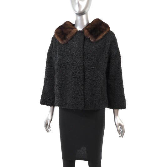 Black Persian Lamb Jacket with Mink Trim- Size S