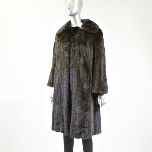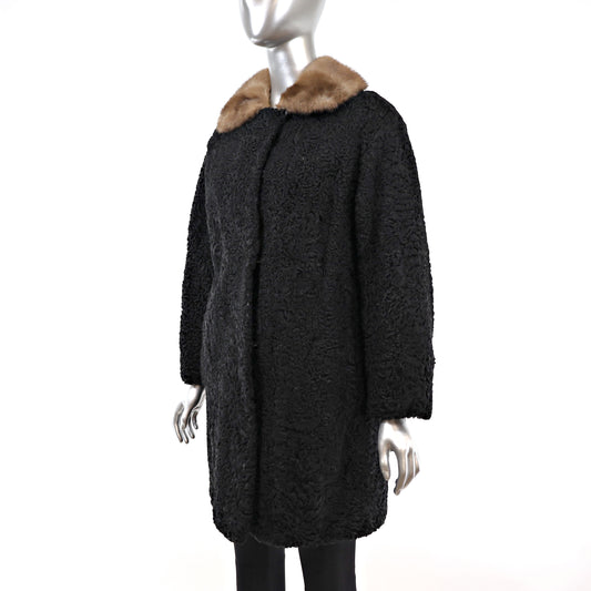 Black Persian Lamb 3/4 Fur Coat With Mink Collar Size S