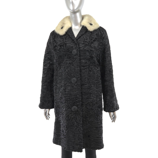 Persian Lamb 3/4 Coat with Mink Collar- Size L