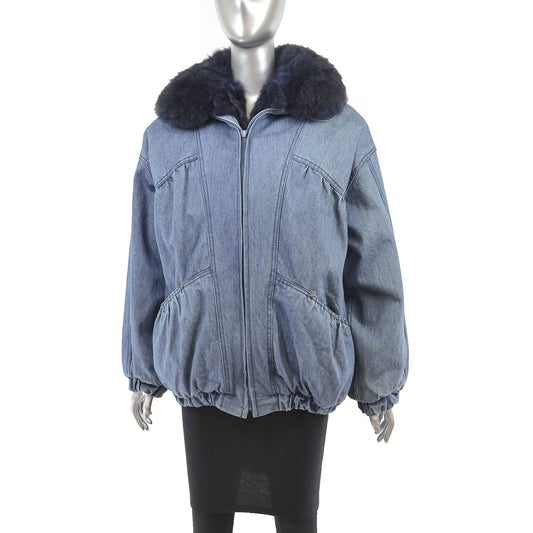 Blue Jean Jacket with Detachable Opossum Lining- Size M