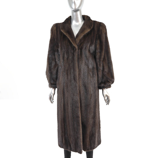 Dark Brown Mink Coat with Sable Collar and Cuffs- Size S