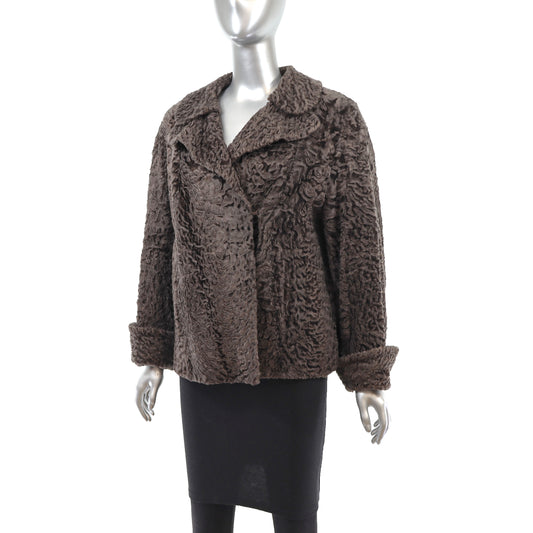 Brown Persian Lamb Coat with Matching Hat- Size M
