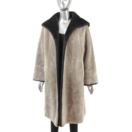 Sheared Hooded Mink Jacket Reversible to Taffeta- Size XL