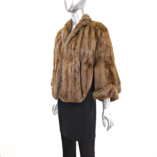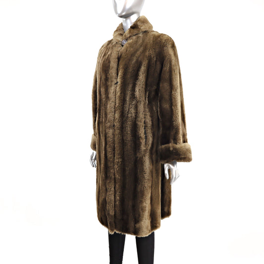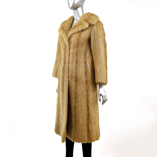 Long Hair Beaver Coat with Detachable Hood- Size M