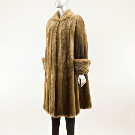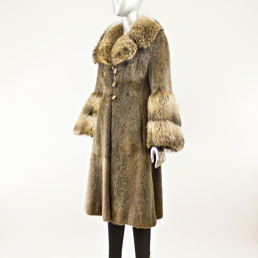 Sheared Beaver Trimmed Micro Fiber Coat - Size XL
