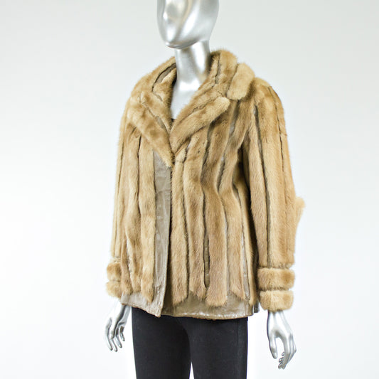 Light Brown Mink Fur Jacket with Leather Inserts - Size S