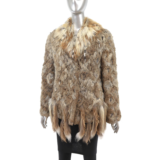 Beige Hooded Rabbit Jacket with Fox Trim- Size M