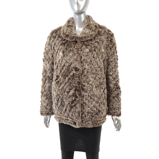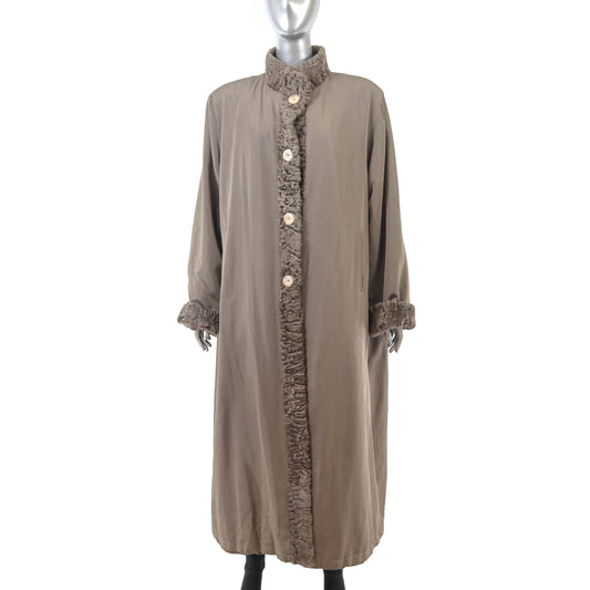 Brown Taffeta Coat with Lamb Trim and Detachable Rabbit Lining- Size XXL