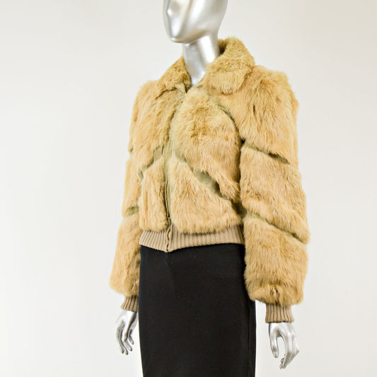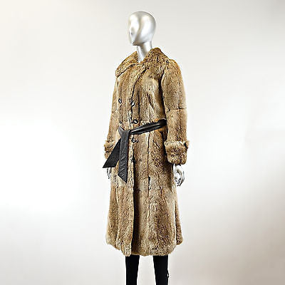 Golden Hare Rabbit Fur Coat with Belt - Size S