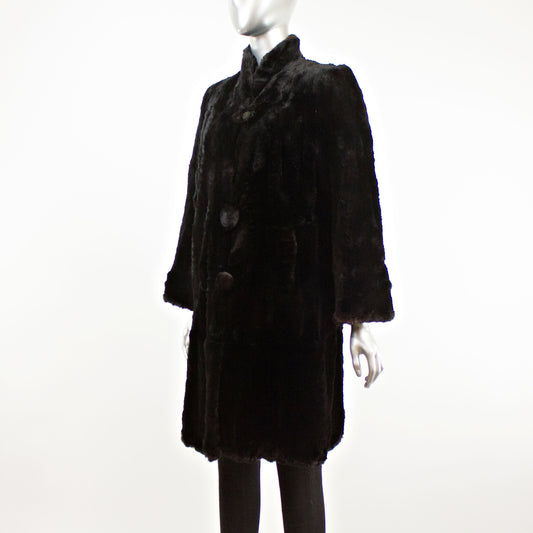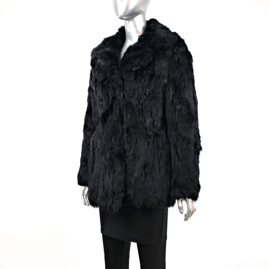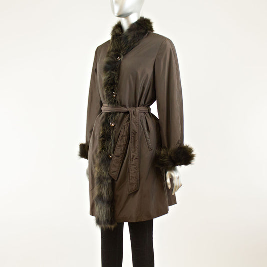 Brown Taffeta Coat with Rabbit Lining and Fox Collar and Cuffs - Size S