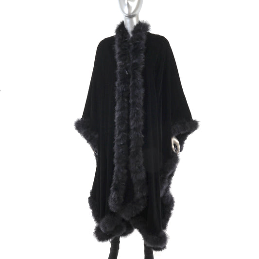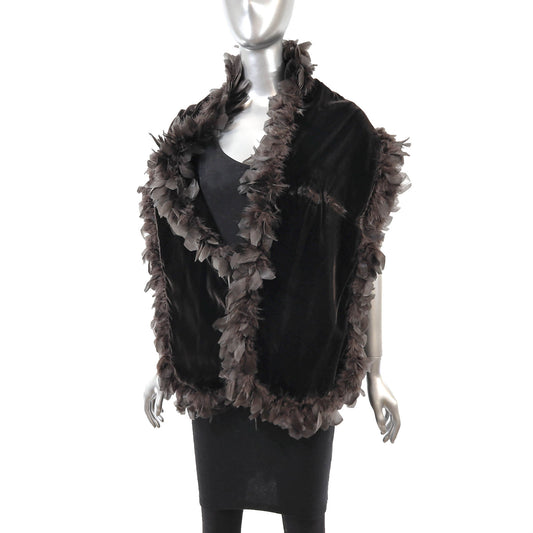 Black Velvet Cape with Feather Trim- Size Free