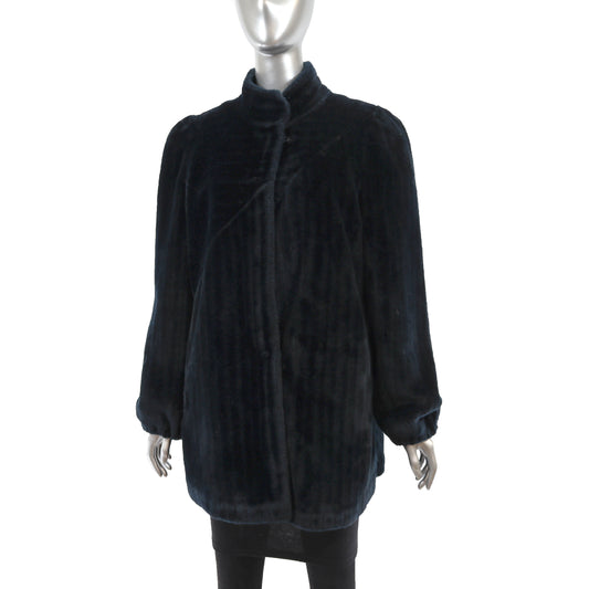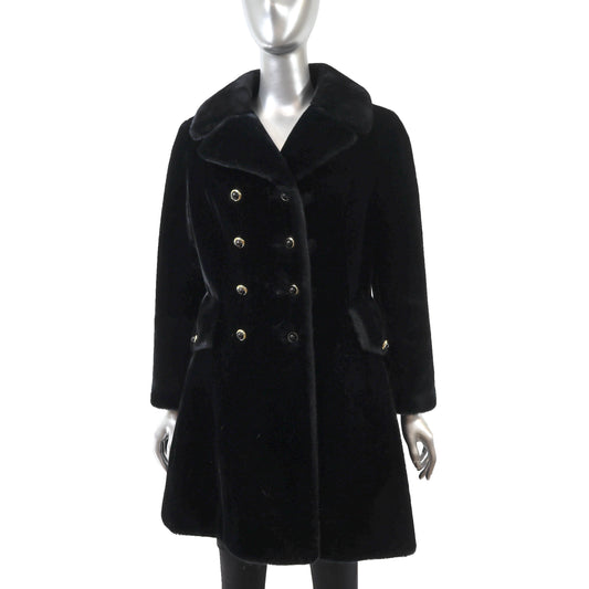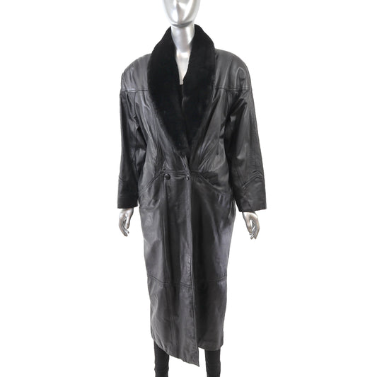 Black Leather Coat with Detachable Faux Fur Collar- Size M
