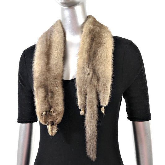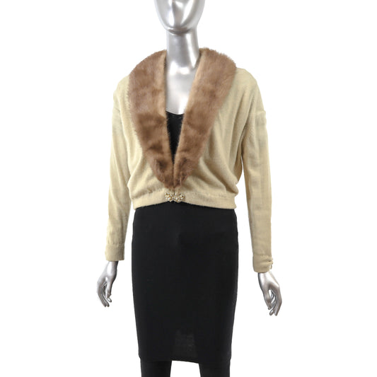 Beige Cashmere Sweater with Removable Mink Collar- Size XS
