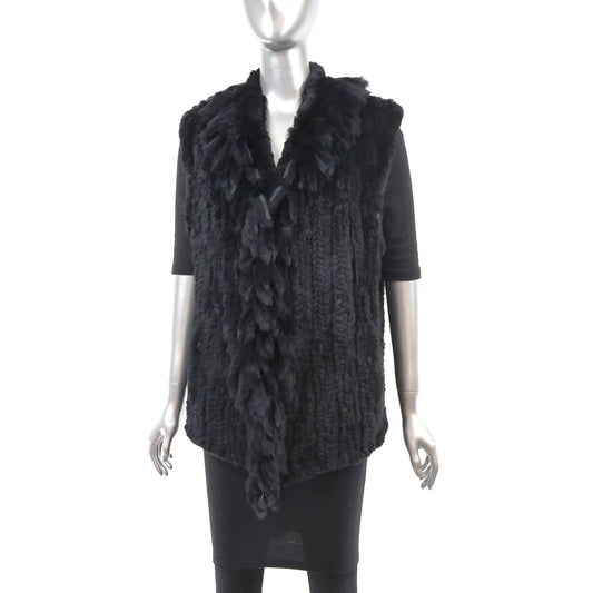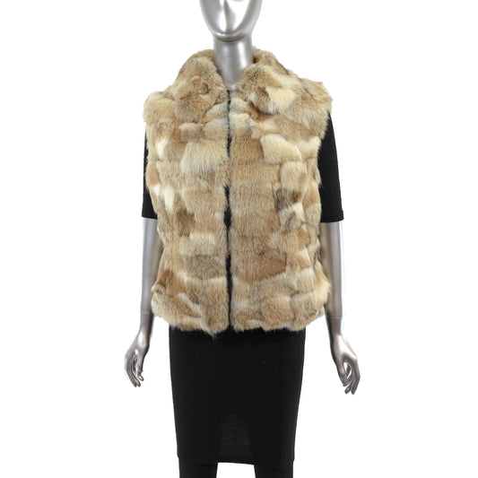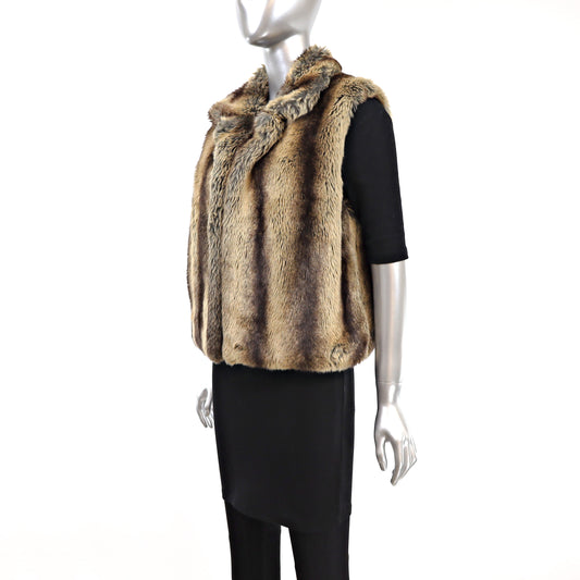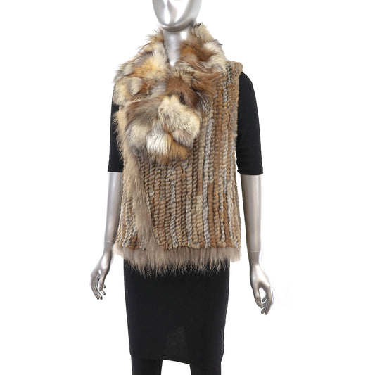 Knitted Brown Rabbit Vest with Fox Trim- Size S