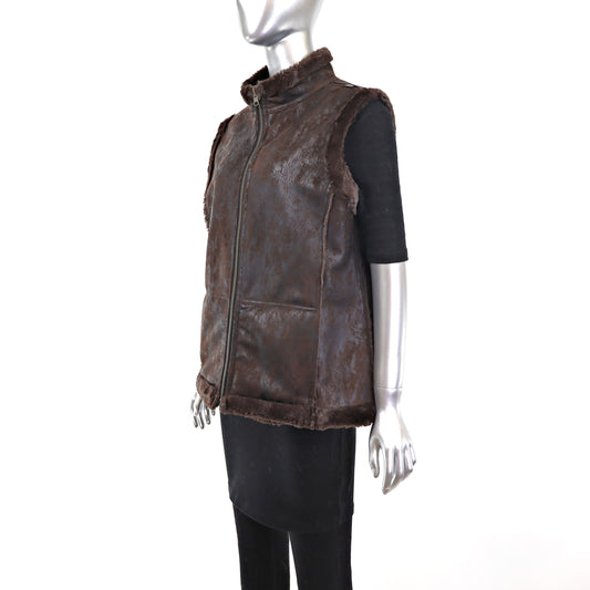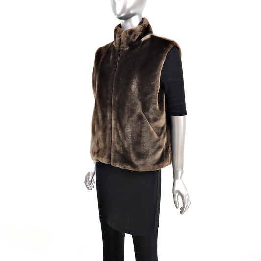 Brown Faux Fur Jacket with Removable Vest- Size M