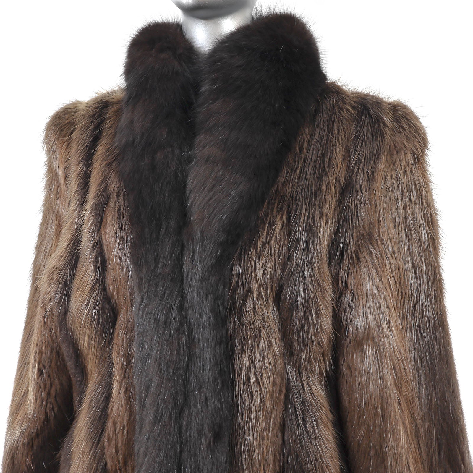 This coat is soft, supple, and well-cared for by its previous owner. It has been stored in cold storage, ensuring its longevity for many years to come.