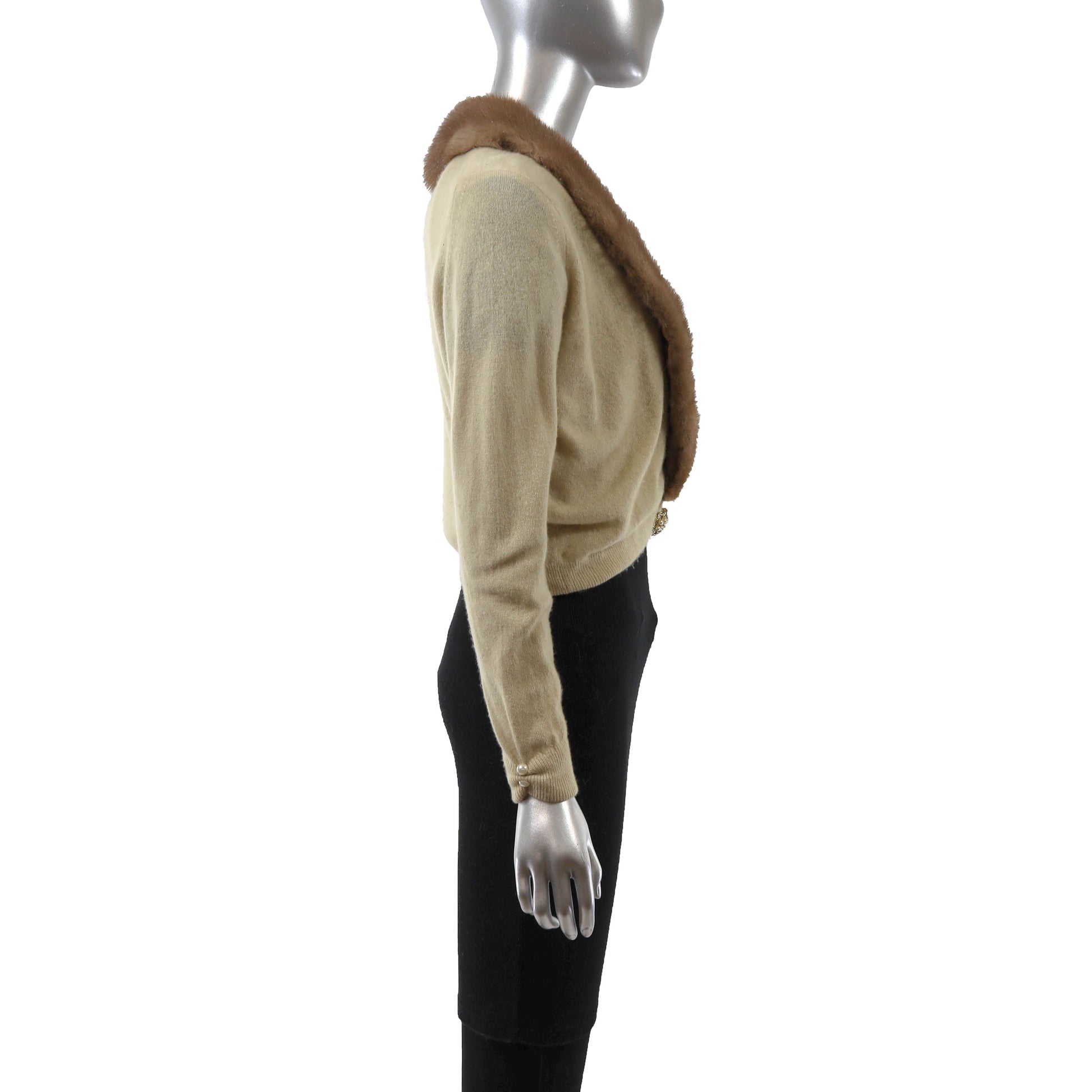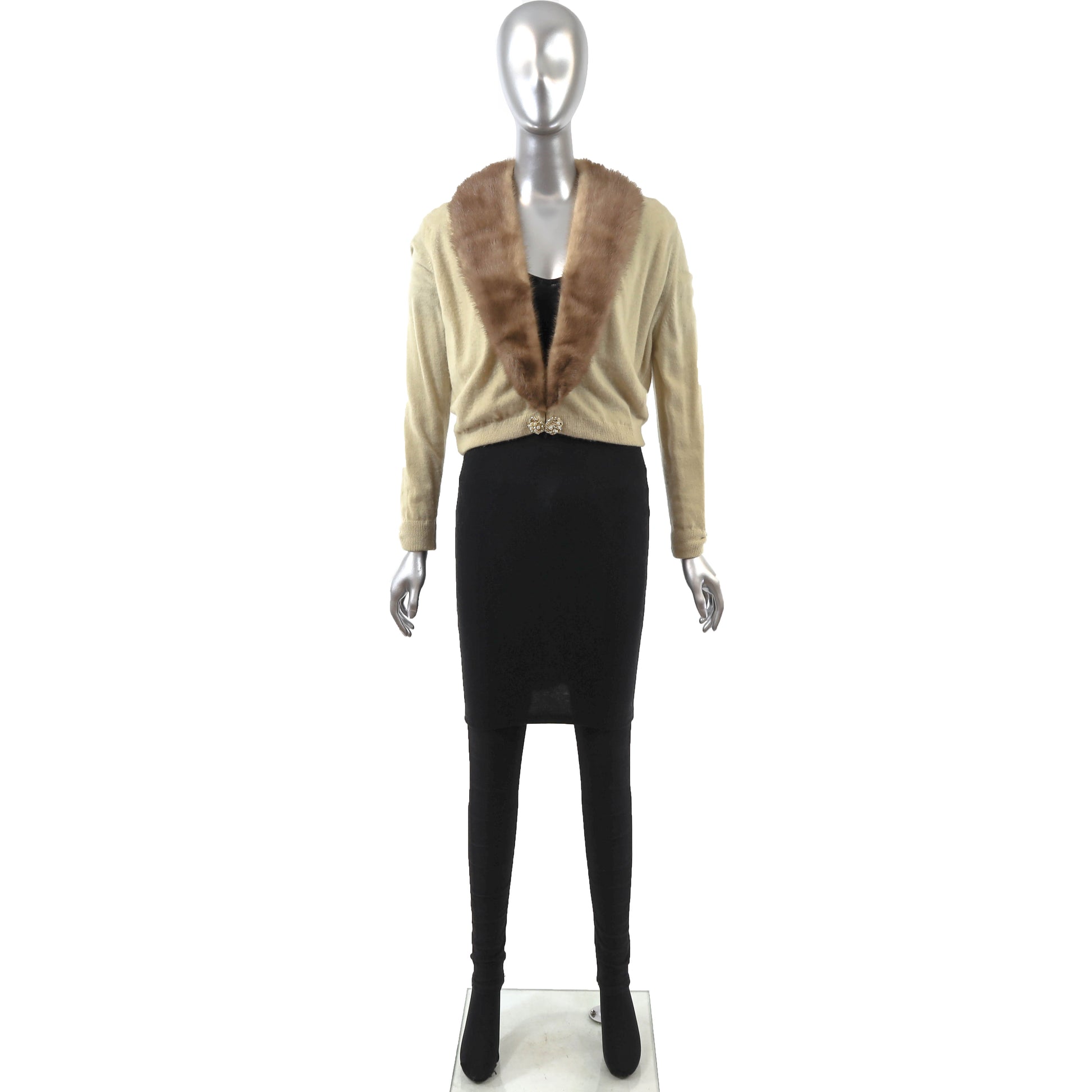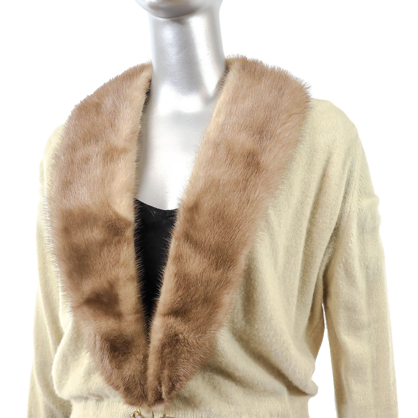 Beige Cashmere Sweater with Removable Mink Collar- Size XS