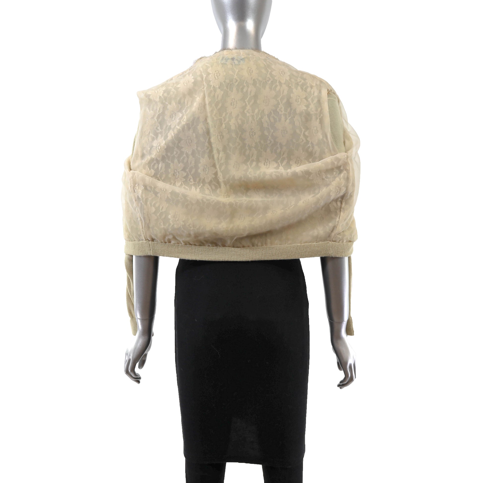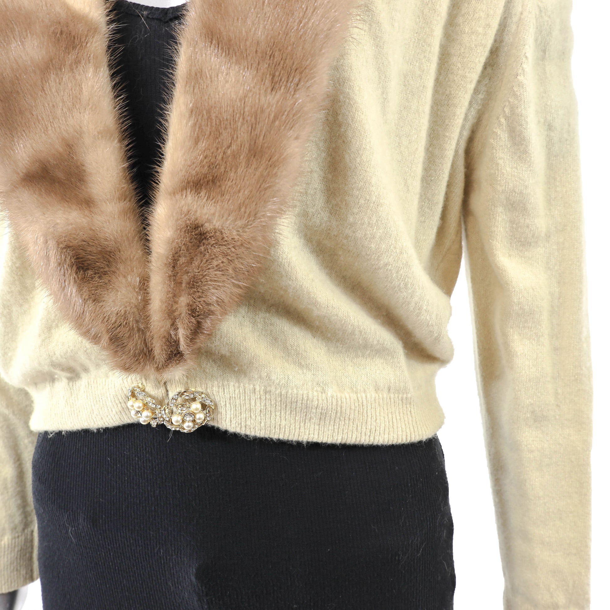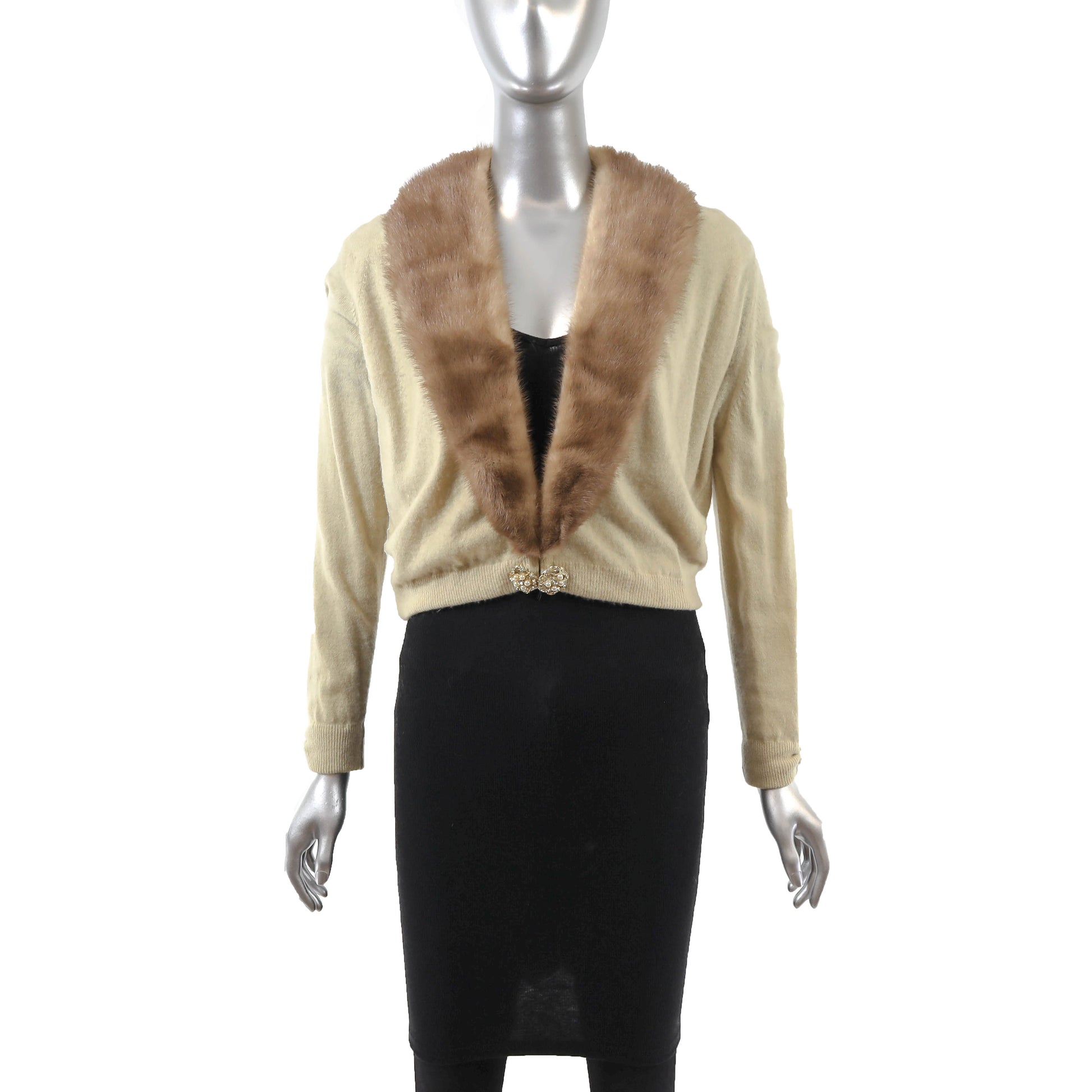 Beige Cashmere Sweater with Removable Mink Collar- Size XS