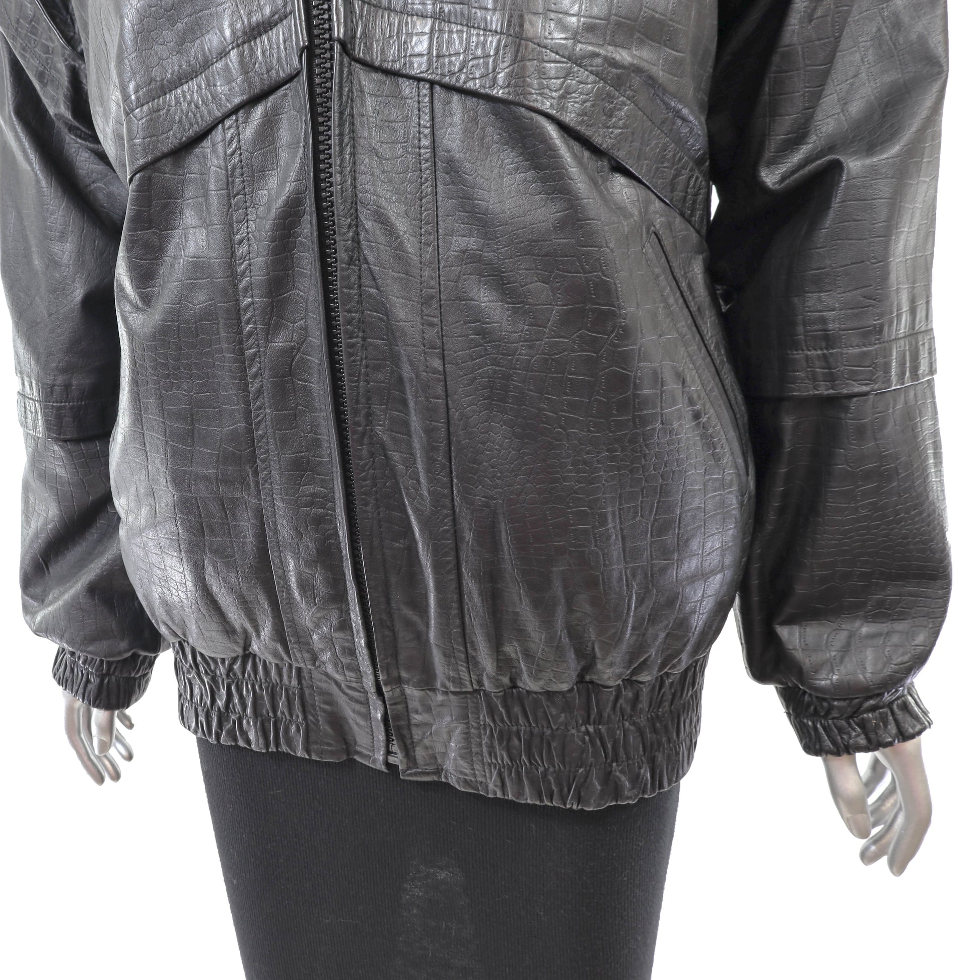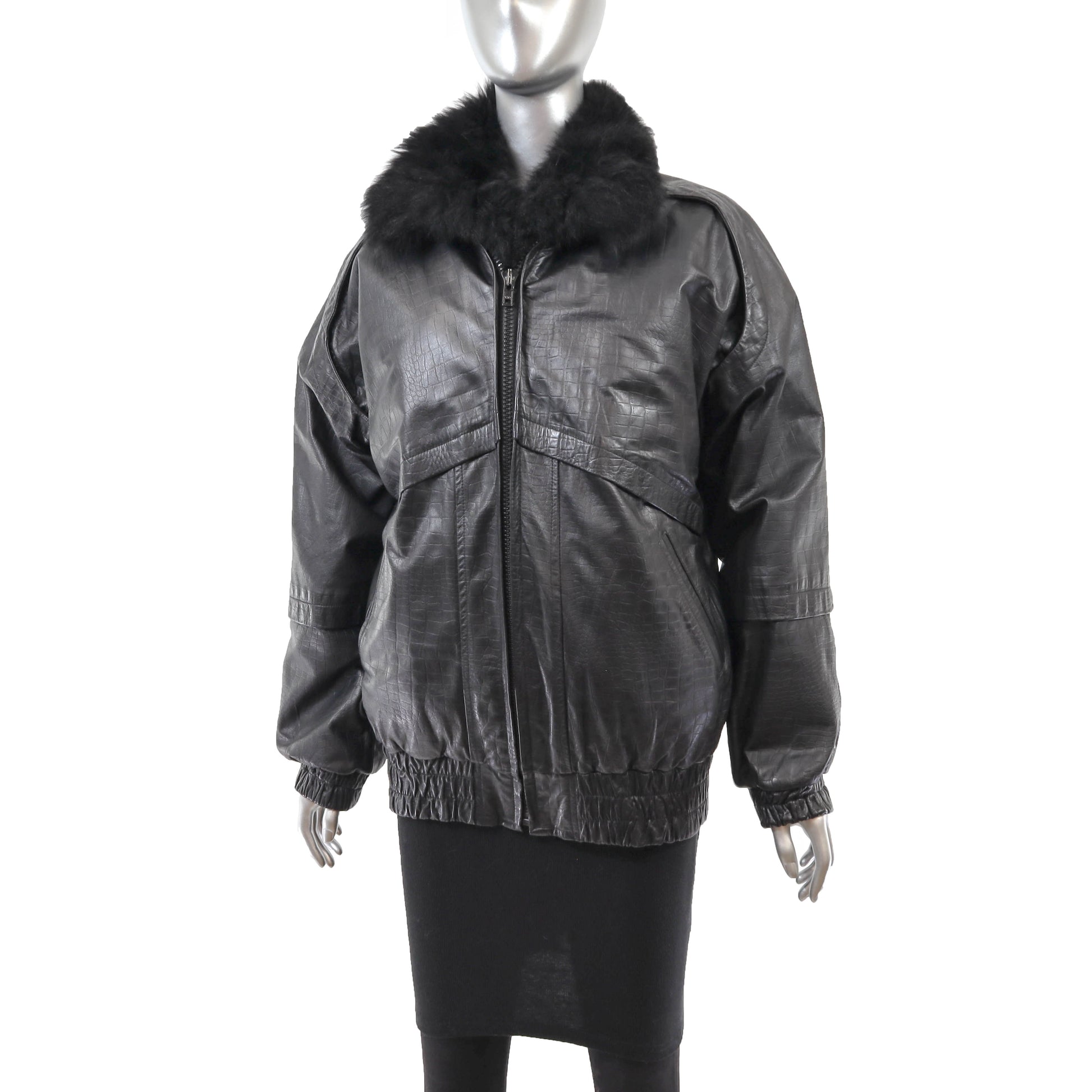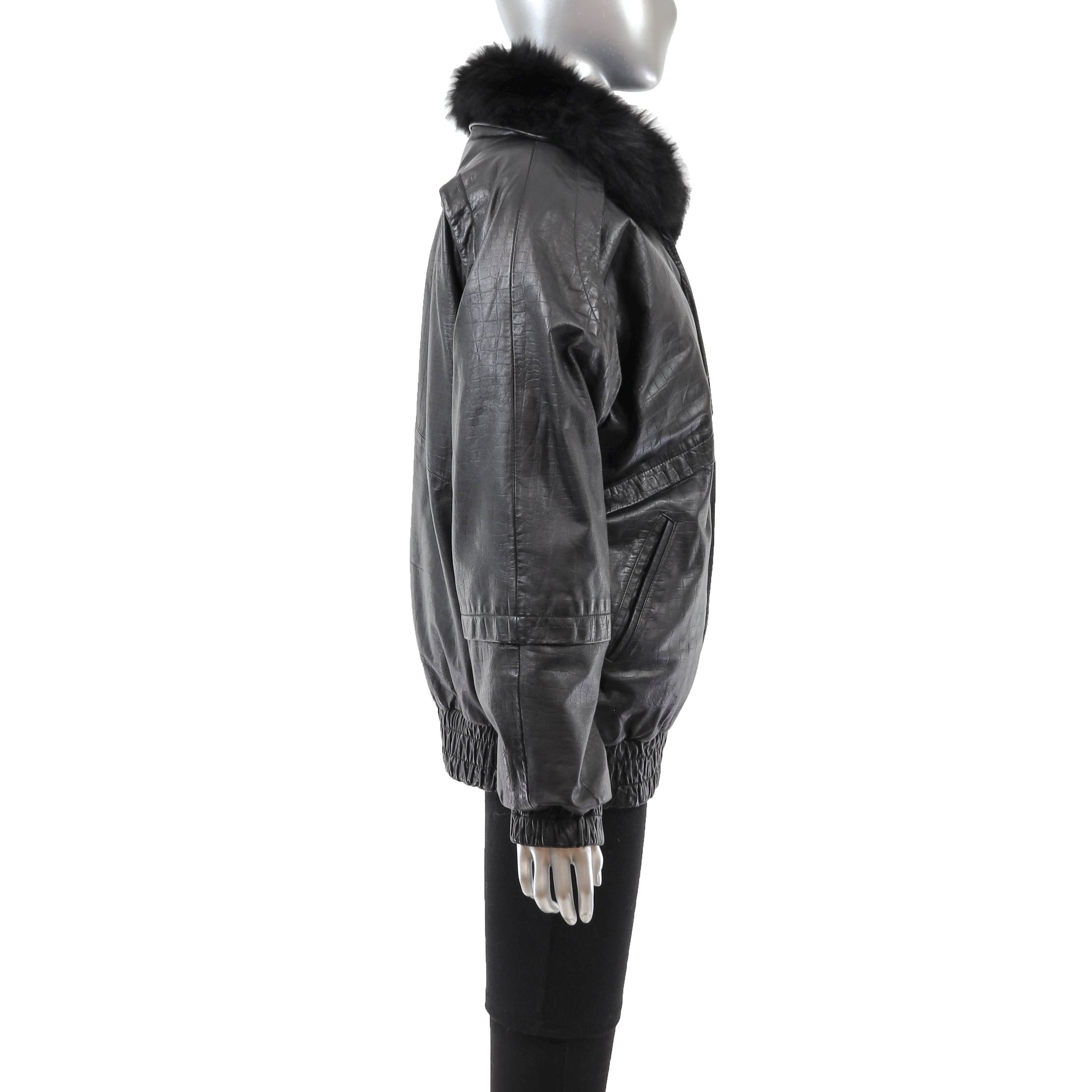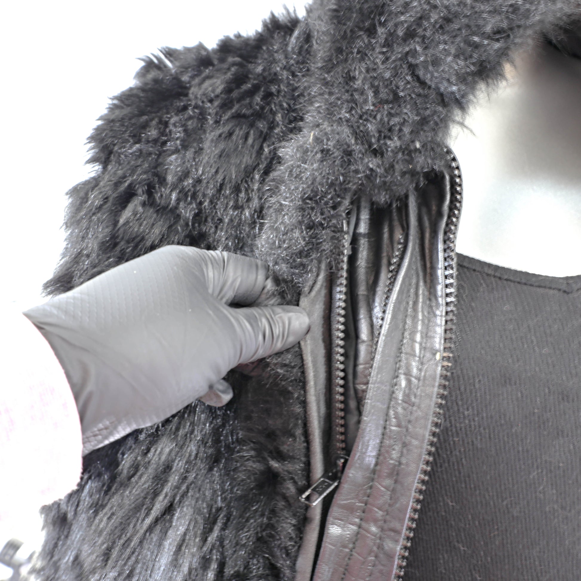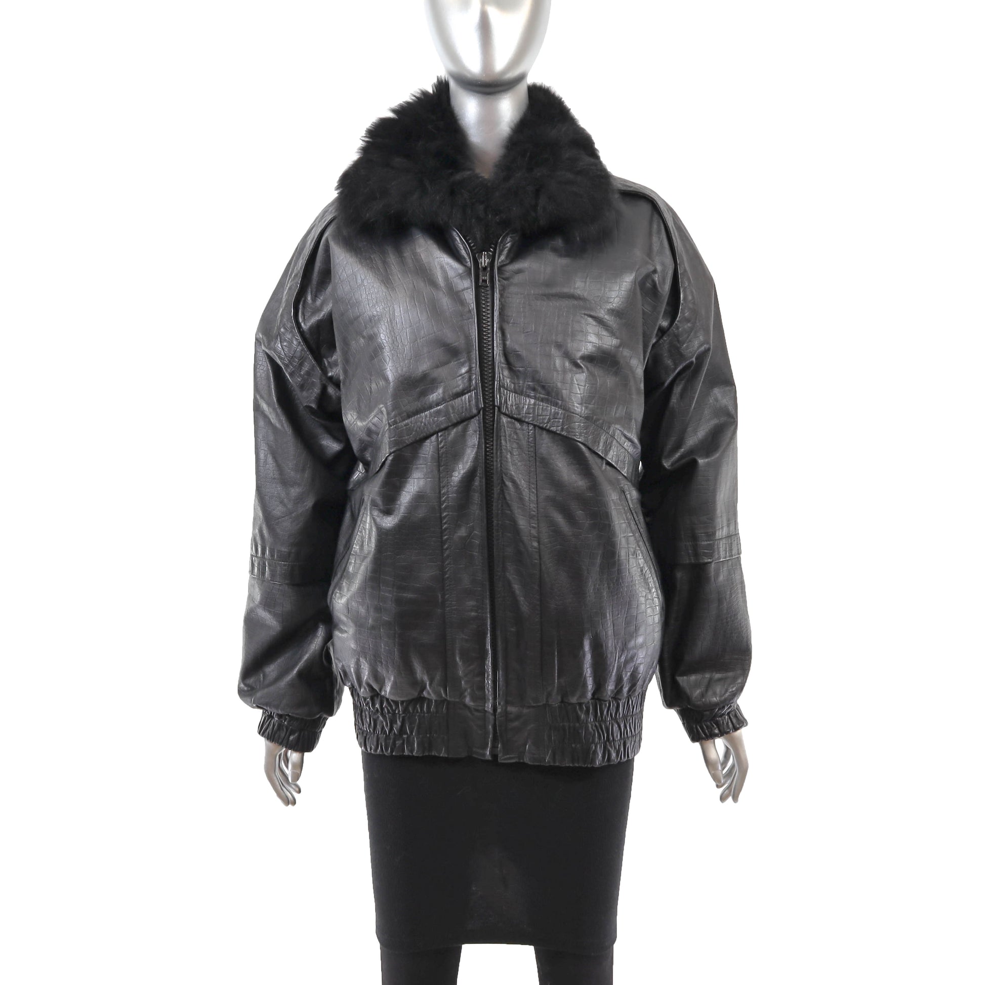 Black Leather Jacket with Detachable Opossum Lining- Size S-M