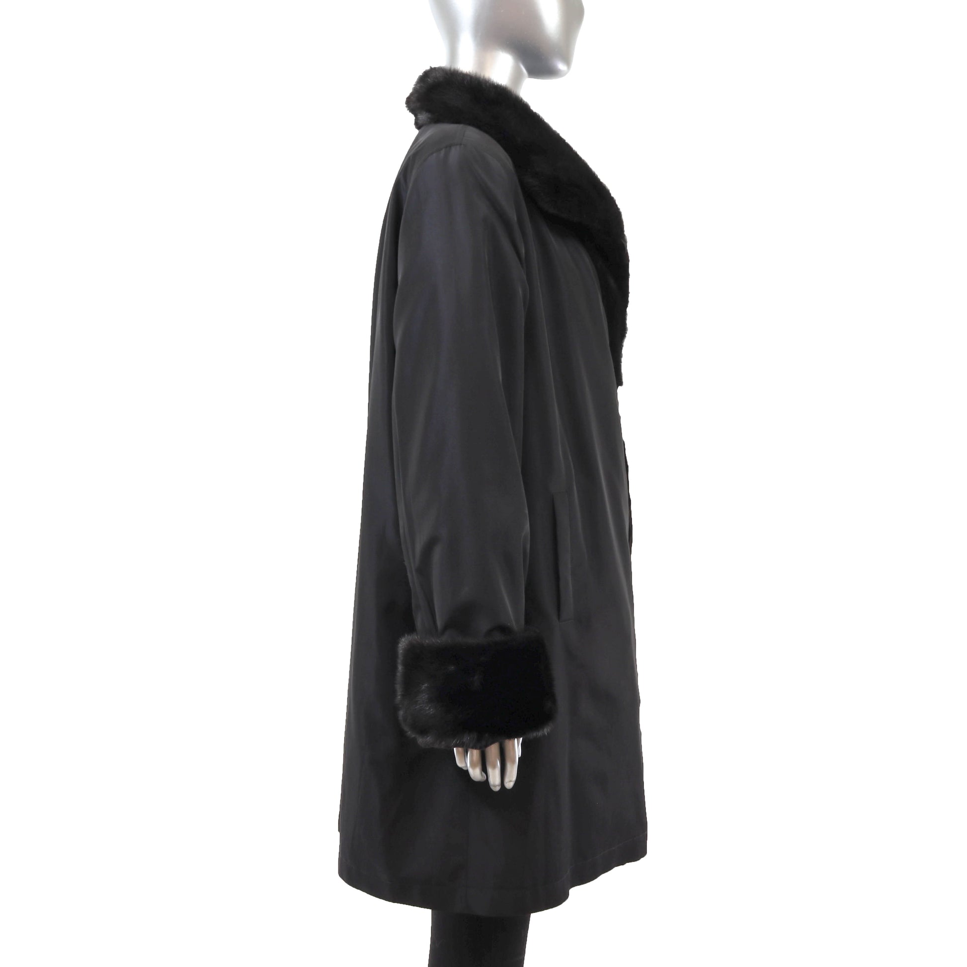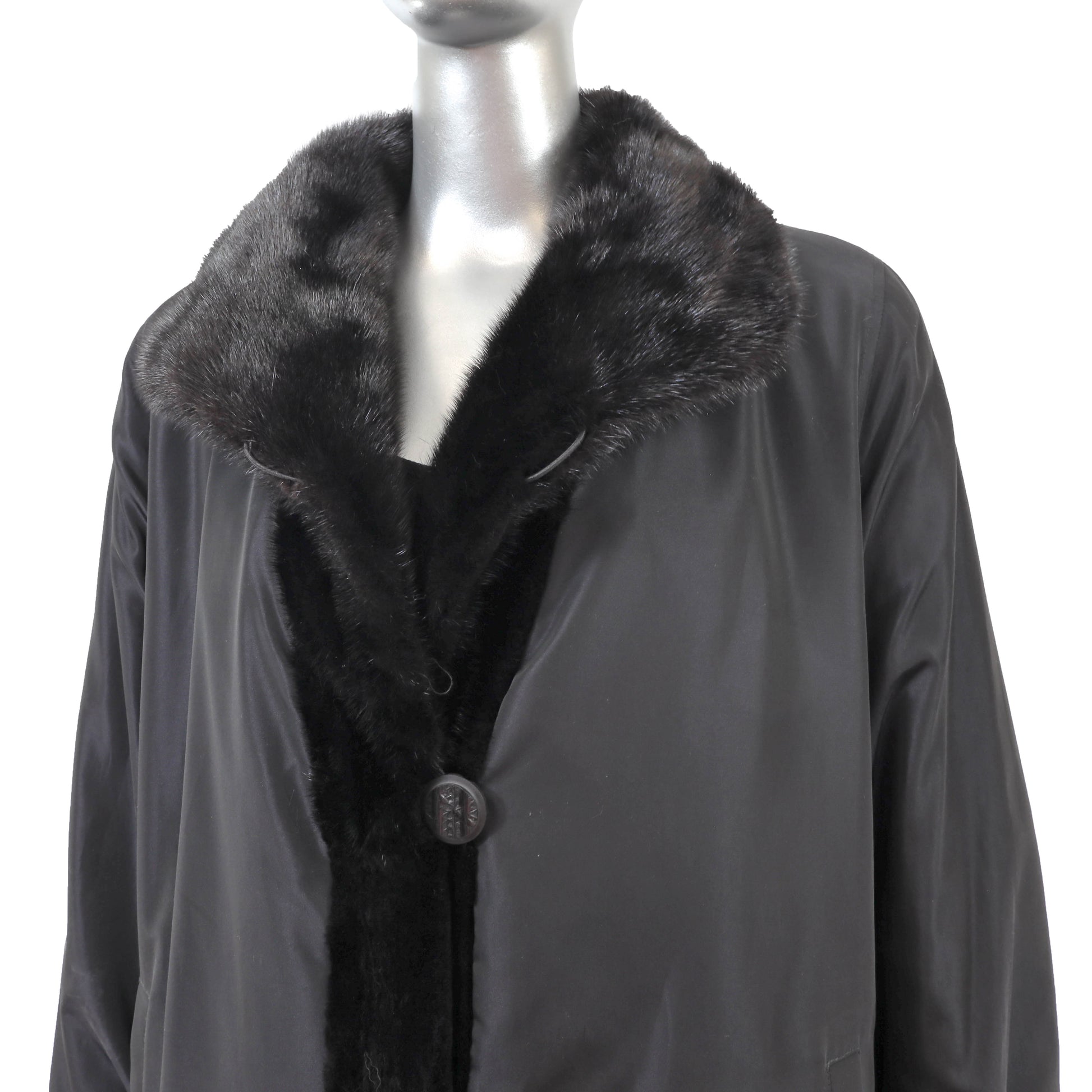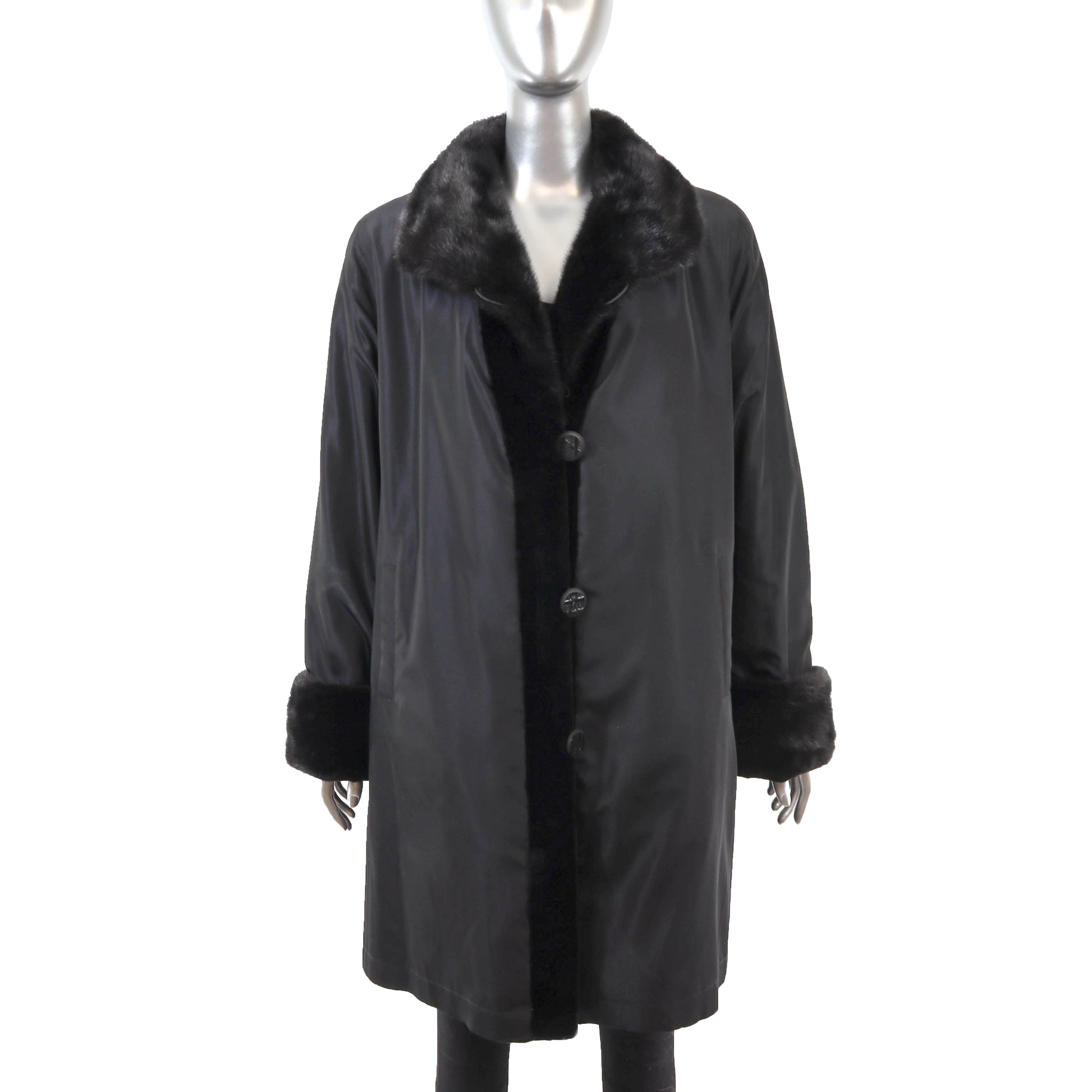 Black Sheared Mink 3/4 Coat Reversible to Taffeta- Size XL